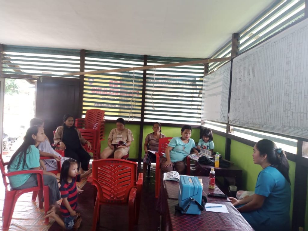 Penanggung jawab/pelaksana tenaga kesehatan Puskesmas Seberuang, tenaga Pustu/Poskesdes Nanga Lot Agustina Milbina, A.Md. Keb dan Maria Melisda Kebuyut, A.Md.Keb. Hadir juga Kader Posyandu Bumil dan sejumlah ibu hamil di Desa Nanga Lot.