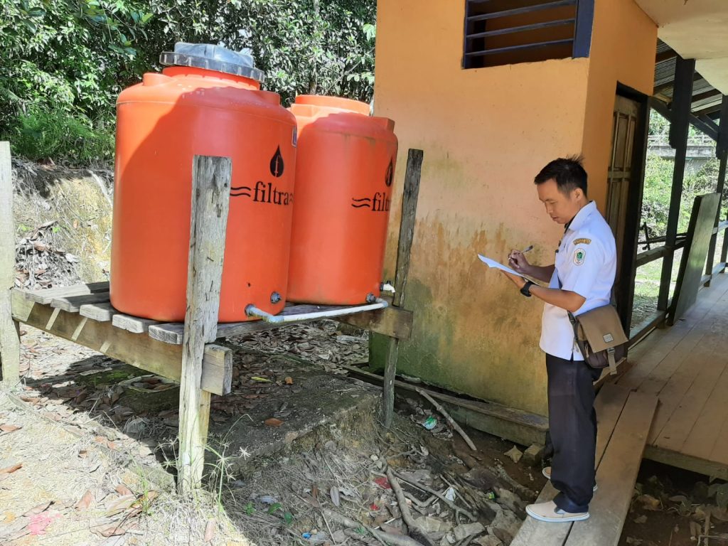 Tenaga Kesehatan Puskesmas Badau melaksanakan Pemantauan Tempat Fasilitas Umum (TFU) di Desa Tajum Kecamatan Badau Kabupaten Kapuas Hulu pada Rabu (21/6/2023).
