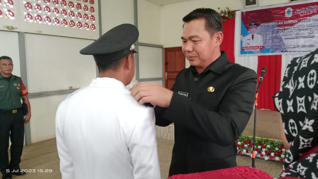 Bupati Kapuas Hulu melantik Kades Terpilih Antar Waktu Desa Nanga Seberuang dan Pelantikan Anggota BPD Desa Kenerak di Kantor Kecamatan Semitau pada Rabu (05 Juli 2023).
