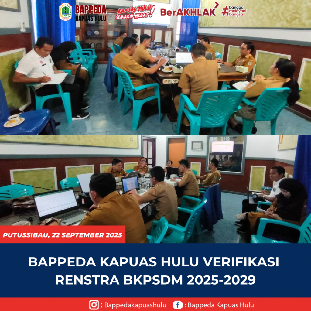 Badan Perencanaan Pembangunan Daerah (Bappeda) Kabupaten Kapuas Hulu melalui Bidang Perencanaan Sosial Budaya (Sosbud) melaksanakan kegiatan Verifikasi Rencana Strategis (RENSTRA) Badan Kepegawaian dan Pengembangan Sumber Daya Manusia (BKPSDM) Tahun 2025–2029. Putussibau, Senin (22/09/2025).