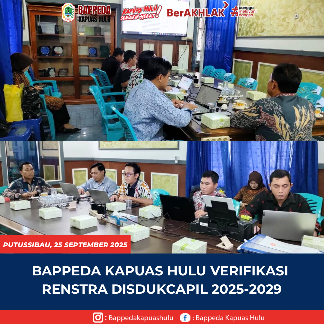 Badan Perencanaan Pembangunan Daerah (Bappeda) Kabupaten Kapuas Hulu melalui Bidang Perencanaan Sosial Budaya (Sosbud) melaksanakan kegiatan Verifikasi Rencana Strategis (RENSTRA) Dinas Kependudukan dan Pencatatan Sipil (Disdukcapil) Tahun 2025–2029. Kamis (25/09/2025). Kegiatan ini bertujuan memastikan dokumen RENSTRA Disdukcapil selaras dengan Rencana Pembangunan Jangka Menengah Daerah (RPJMD) Kabupaten Kapuas Hulu 2025–2029, serta mendukung arah kebijakan nasional di …