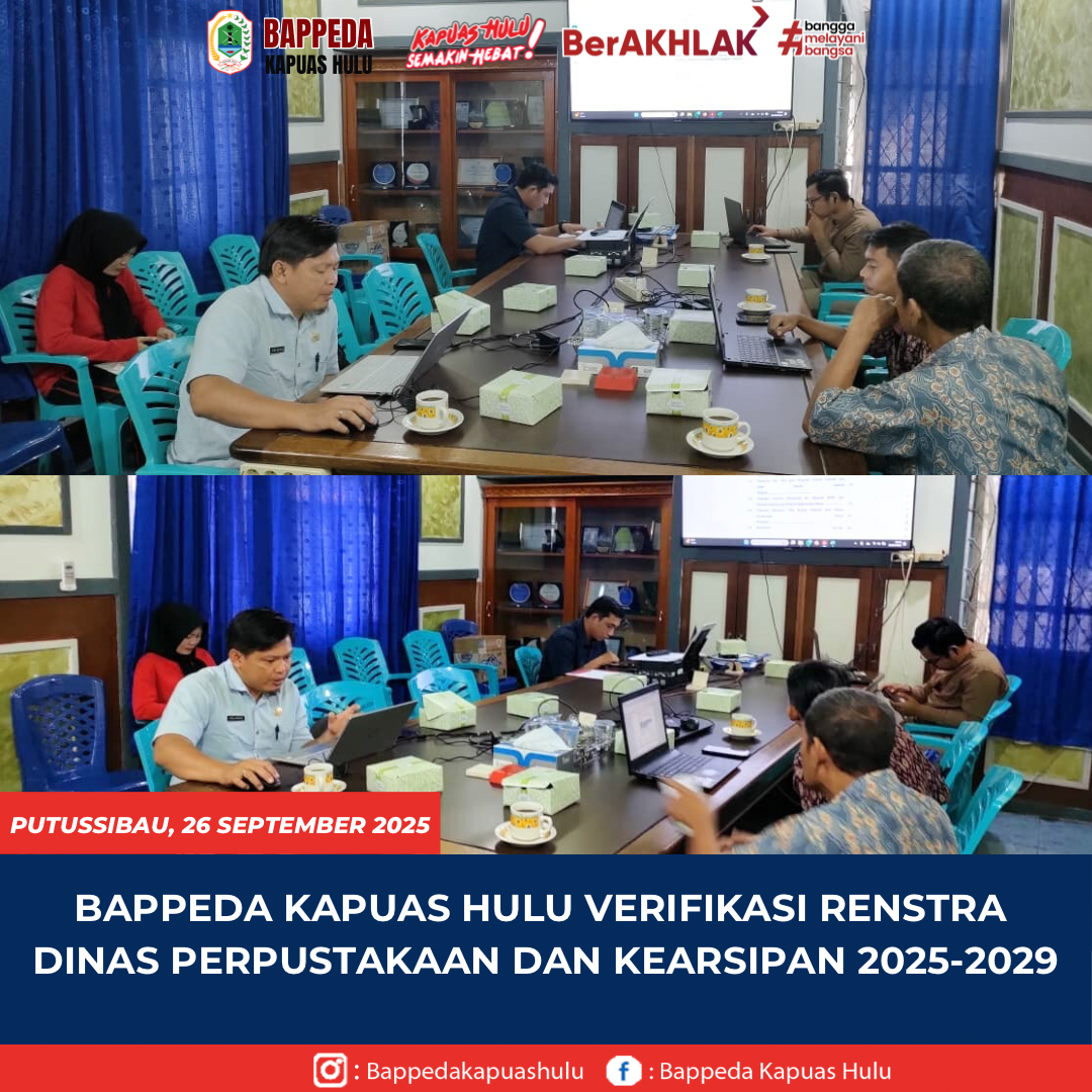 Badan Perencanaan Pembangunan Daerah (Bappeda) Kabupaten Kapuas Hulu melalui Bidang Perencanaan Sosial Budaya (Sosbud) melaksanakan kegiatan Verifikasi Rencana Strategis (RENSTRA) Dinas Perpustakaan dan Kearsipan Tahun 2025–2029. Jumat ( 26/09/2025). Kegiatan ini bertujuan untuk memastikan dokumen RENSTRA yang disusun telah selaras dengan Rencana Pembangunan Jangka Menengah Daerah (RPJMD) Kabupaten Kapuas Hulu 2025–2029, serta mendukung arah kebijakan …