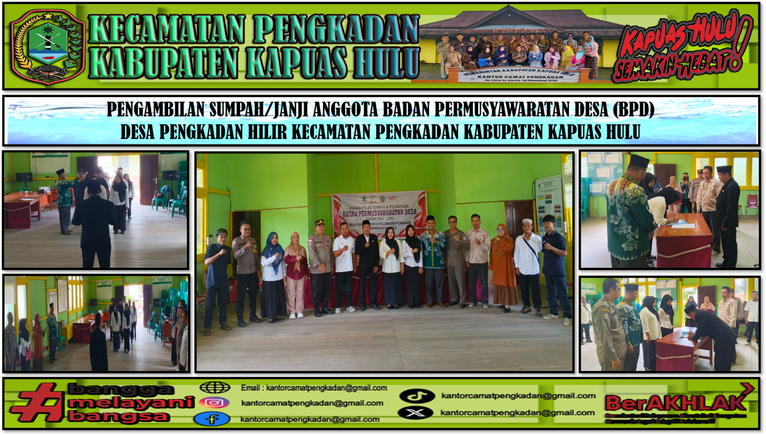 Pengambila Sumpah/Janji Badan Permusyawaratan Desa telah dilaksanakan pada hari ini Rabu (1/10/2025). yang bertempat di Aula Kantor Desa Pengkadan Hilir. Pada Kesempatan ini Bapak Kepala Desa Pengkadan Hilir Suharto hadir dalam acara tersebut dengan menghadirkan juga Bapak Plt.Camat Pengkadan Sekoni,,S.Sos,KUA Kec.Pengkadan Marzuki,SE,I ,Kasi Pemerintahan Ade Darmudin,SE,Kasi Trantibum Ta’azim,SE,Pendamping Desa Kecamatan Pengkadan,Aparatur PemDes Pengkadan Hilir beserta …