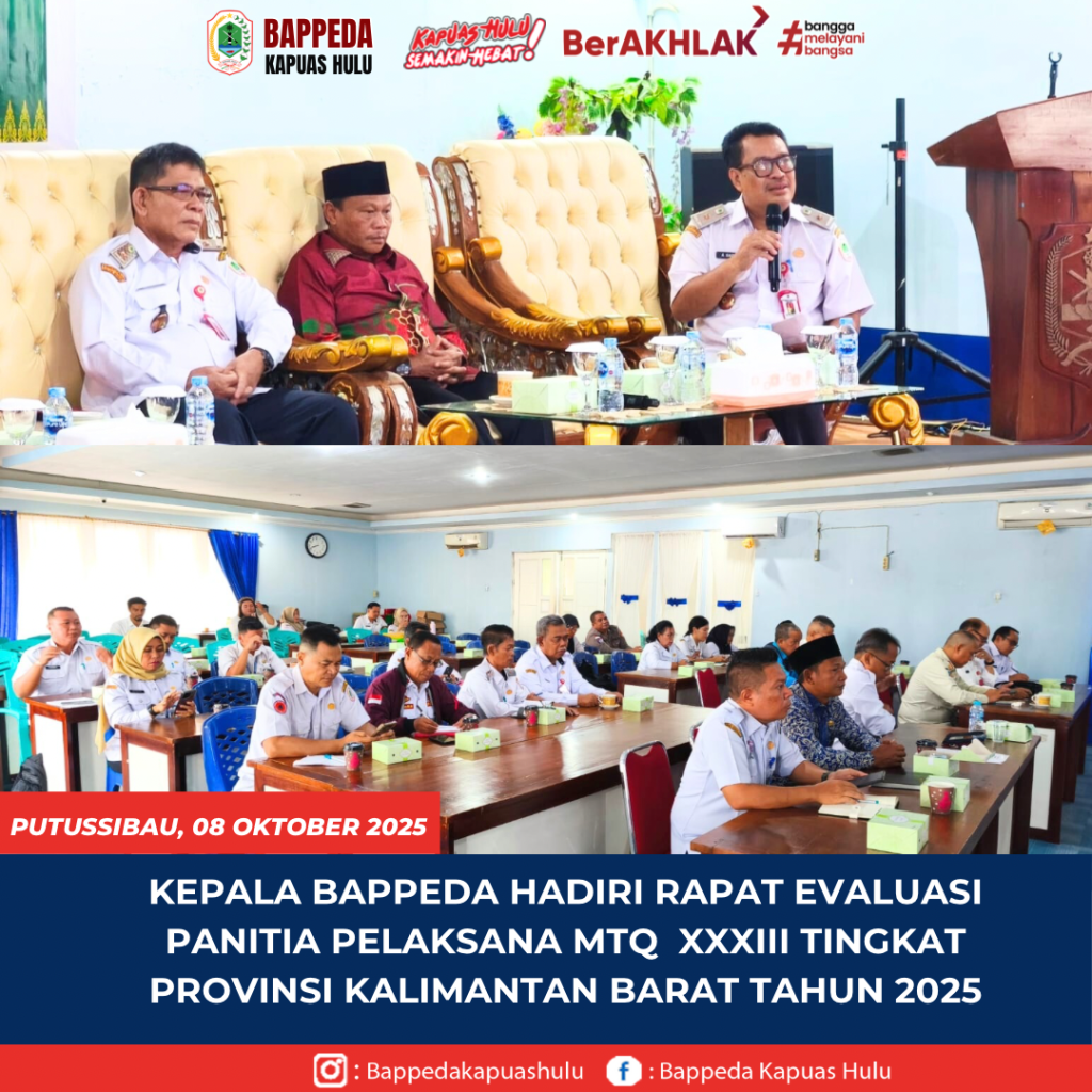 Putussibau-Badan Perencanaan Pembangunan Daerah ( BAPPEDA ) Kabupaten Kapuas Hulu Ambrosius Sadau,S.H.,M.Si Selaku Sekretaris Umum MTQ menghadiri Rapat Evaluasi Panitia MTQ XXXIII Tingkat Provinsi Kalimantan Barat Tahun 2025, yang bertempat di Aula Bappeda, Rabu (08/10/2025).