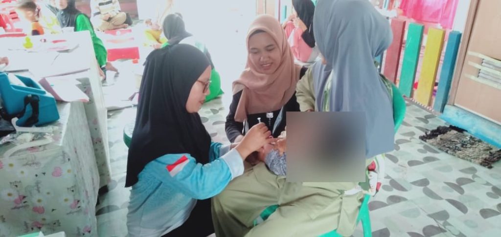 “Imunisasi rutin yang dilakukan terdiri dari imunisasi Dasar dan imunisasi lanjutan, imunisasi diberikan kepada sasaran yang sehat untuk itu sebelum pemberian imunisasi diperlukan skening untuk menilai kondisi sasaran.” Jelas Yunungsih.