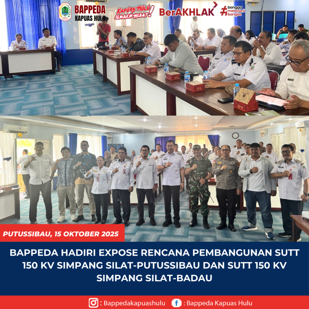 Kepala Badan Perencanaan Pembangunan Daerah ( BAPPEDA ) Kabupaten Kapuas Hulu Ambrosius Sadau,S.H.,M.Si menghadiri Expose Rencana Pembangunan SUTT 150 KV Simpang Silat-Putussibau dan SUTT 150 KV Simpang Silat-Badau, Rabu (15/10/2025) pukul 10.00 WIB-selesai.