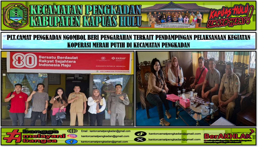 Plt. Camat Pengkadan memberikan pengarahan kepada tim pendamping terkait pelaksanaan Kegiatan Koperasi Merah Putih Desa Merah Putih. Pengarahan ini ditujukan kepada tim pendamping desa Se-kecamatan pengkadan, Senin (13/10/2015). Plt.Camat Pengkadan menyampaikan pentingnya sinergi antara semua pihak guna memastikan pelaksanaan Musdesus berjalan dengan tertib dan sesuai ketentuan.