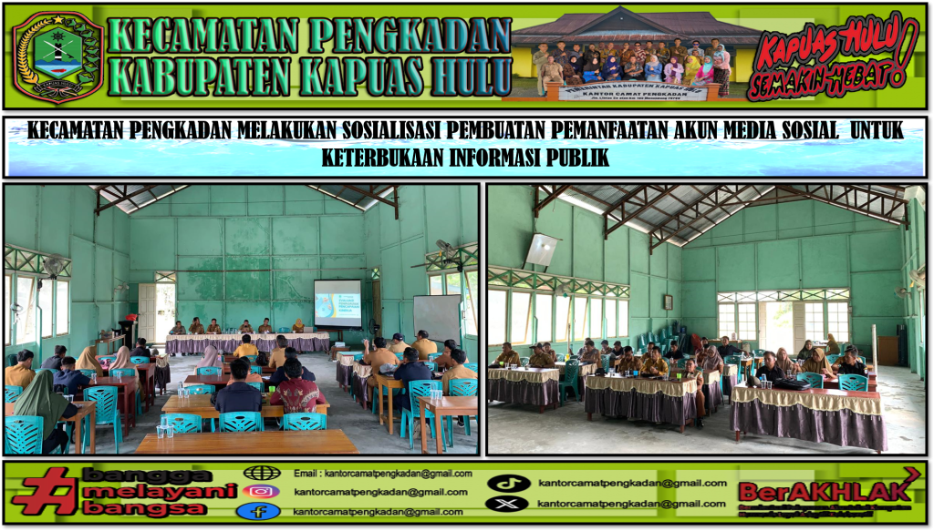 Kecamatan Pengkadan mulai melakukan keterbukaan Informasi Publik, kini sudah mulai mererapan ke 11 desa di Kecamatan Pengkadan, pada hari ini Senin di Gor Kecamatam Pengkadan melakukan kegiatan Sosialisasi ke 11 Desa dalam pembuatan pemanfaatan akun Instagram untuk keterbukaan informasi public di pemerintahan Desa agar mudah di askes Masyarakat tetnag kegiatan Desa.