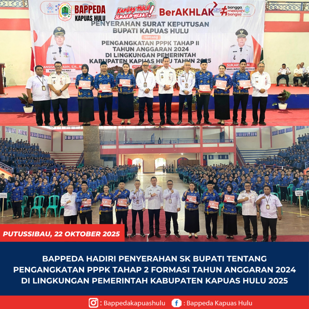 Kepala Badan Perencanaan Pembangunan Daerah (BAPPEDA) Kabupaten Kapuas Hulu Ambrosius Sadau,S.H.,M.Si menghadiri kegiatan penyerahan SK Bupati tentang pengangkatan PPPK tahap 2 formasi tahun anggaran 2024 di lingkungan Pemerintah Kabupaten Kapuas Hulu 2025, bertempat di Indor Volly, Rabu (22/10/2025).