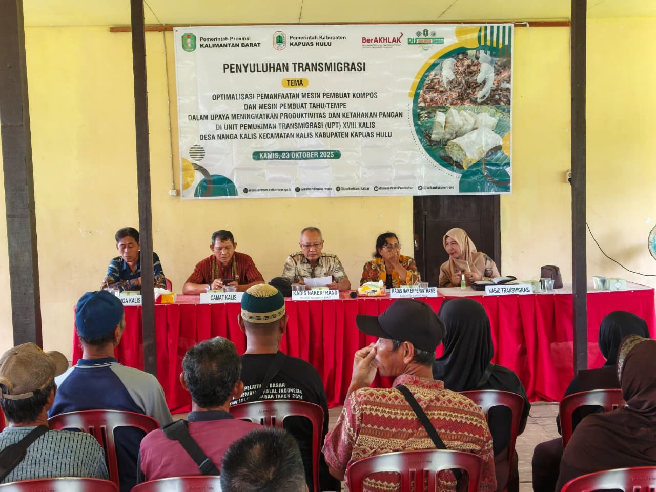 Disnakertrans Prov. Kalbar bekerjasama dengan Disnakerintrans Kapuas Hulu mengadakan Kegiatan Penyuluhan Transmigrasi Dengan Tema “Optimalisasi Pemanfaatan Mesin Pembuatan Kompos Dan Mesin Pembuat Tahu/Tempe Dalam Upaya Meningkatkan Produktivitas Dan Ketahanan Pangan Di Unit Pemukiman Transmigrasi (UPT) XVIII Kalis Desa Nanga Kalis Kecamatan Kalis Kabupaten Kapuas Hulu”. Kegiatan penyuluhan itu dilaksanakan di Balai Pertemuan Trans Kalis dengan …
