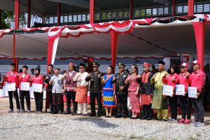 Bertindak sebagai Inspektur Upacara, Dandim 1260/Putussibau Letkol Arm Andreas Prabowo Putro, S.I.Pem., M.I.P., M.Han., yang dalam amanatnya mengajak generasi muda untuk terus menumbuhkan semangat gotong royong, inovasi, dan kepedulian terhadap kemajuan daerah serta bangsa.