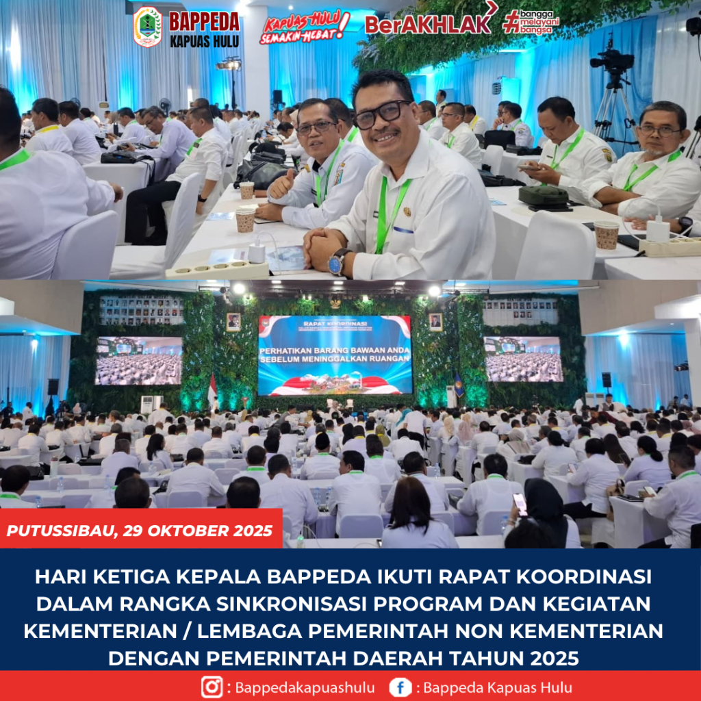 Kepala Badan Perencanaan Pembangunan Daerah ( BAPPEDA ) Kabupaten Kapuas Hulu Ambrosius Sadau,S.H.,M.Si mengikuti Rapat Koordinasi Dalam Rangka Sinkronisasi Program Dan Kegiatan Kementerian / Lembaga Pemerintah Non Kementerian Dengan Pemerintah Daerah Tahun 2025 Hari Ketiga, yang bertempat di Kampus IPDN Jatinangor, Rabu (29/10/2025).