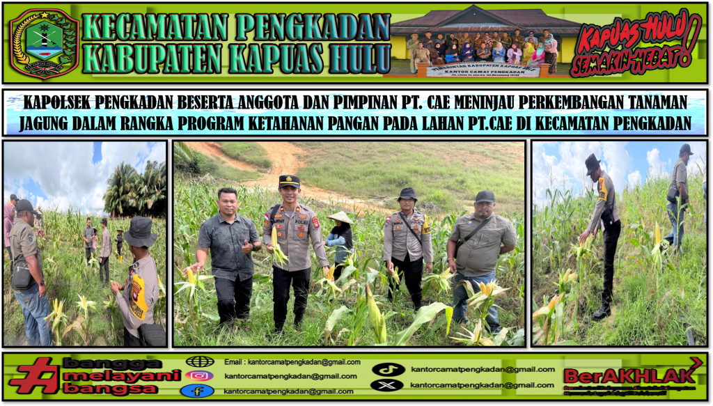 Dalam rangka mendukung program ketahanan pangan nasional, Kapolsek Pengkadan Iptu Dedny Arif Setiady, S.H,.M.H didampingi para Polisi penggerak polsek Pengkadan serta bhabinkamtibmas meninjau langsung perkembangan tanaman jagung yang ditanam di lahan Perkebunan PT.CAE Kec. Pengkadan Kab. Pengkadan, Kamis (30/10/2025).