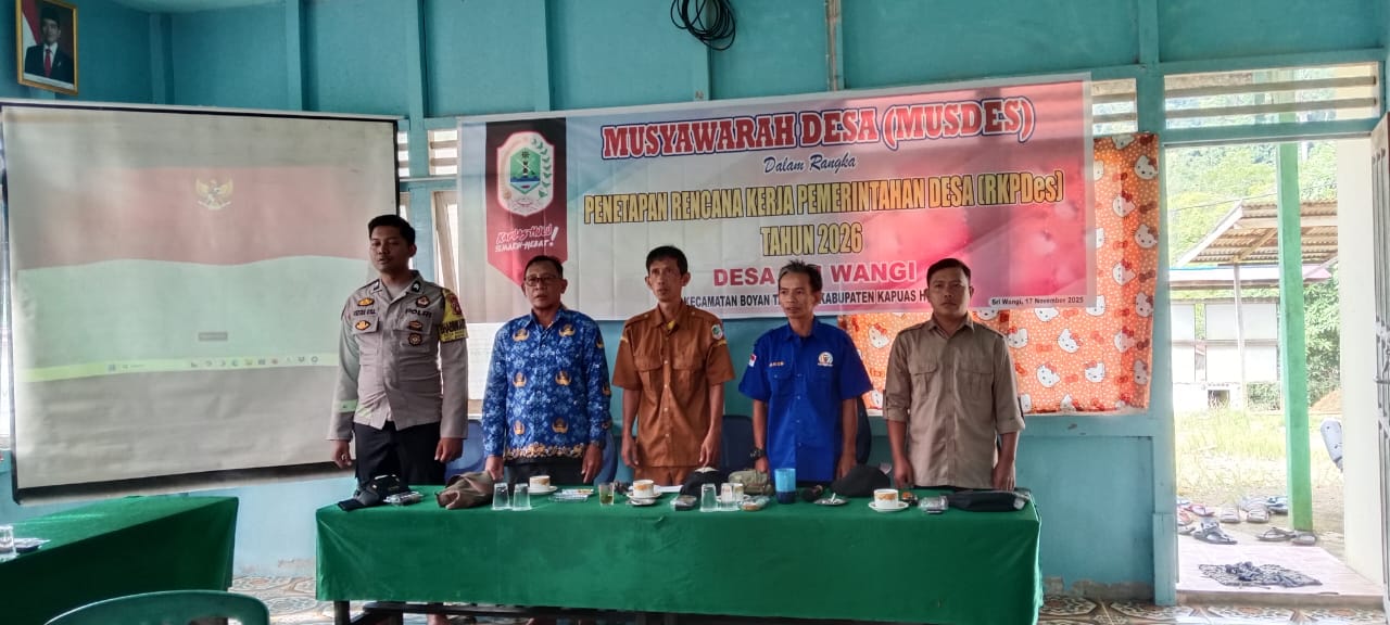 Desa Sri Wangi Kecamatan Boyan Tanjung Melaksanakan Kegiatan Musyawarah desa dalam rangka Penetapan RKP Desa Tahun 2026 di Kantor Desa Sri Wangi, Senin (17/11/ 2025). Kegiatan tersebut dihadiri oleh Staf Kantor Camat Boyan Tanjung, Bhabinkantibmas, Pendamping Desa, Pemerintah Desa Sri Wangi, BPD, Tokoh Masyarakat, Perwakilan dari PKK, Kader Posyandu, Guru Paud, Tokoh Adat dan lain-lain. …
