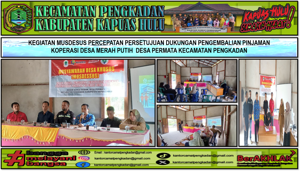 Musdesus dihadiri oleh Kasi Trantibum Kecamatan Pengkadan, Ta’azim, S.E, perwakilan dari Kantor Kecamatan Pengkadan, DPMD, Pendamping Koperasi Desa Merah Putih Kecamatan Pengkadan, Pendamping Desa Kecamatan Pengkadan, Staf Kasi Pemerintahan Kecamatan Pengkadan, BPD, Perangkat Desa Permata, serta Pengawas dan Pengurus KDMP Kecamatan Pengkadan.