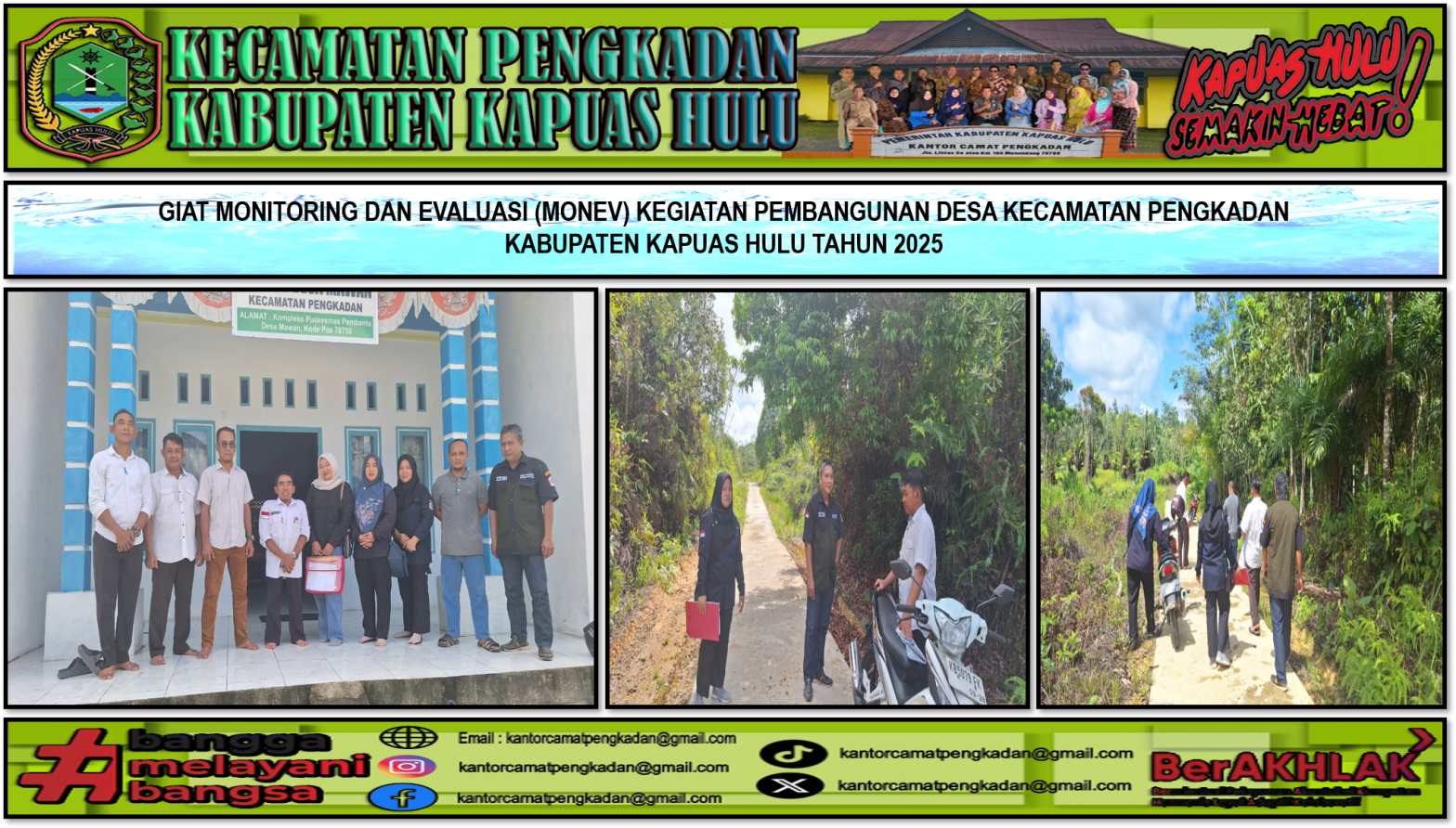 Pemerintah Kecamatan Pengkadan Kabupaten Kapuas Hulu melakukan kegiatan monitoring dan evaluasi (monev) kegiatan pembangunan Desa Tahun Anggaran 2025 di Desa Mawan. Tim Movev dan Evaluasi Kecamatan Pengkadan Sofi Wargita,S.E,Kurniasih,S.P, dan Anwar Sadat,Pendamping Desa Kecamatan Pengkadan,Plt.Kades Mawan,Sekretaris Desa Mawan,Apratur Desa mawan,BPD beserta Anggota dan Lembaga Masyarakat Desa melakukan mengecek secara langsung pembangunan fisik dan tertib administrasi …