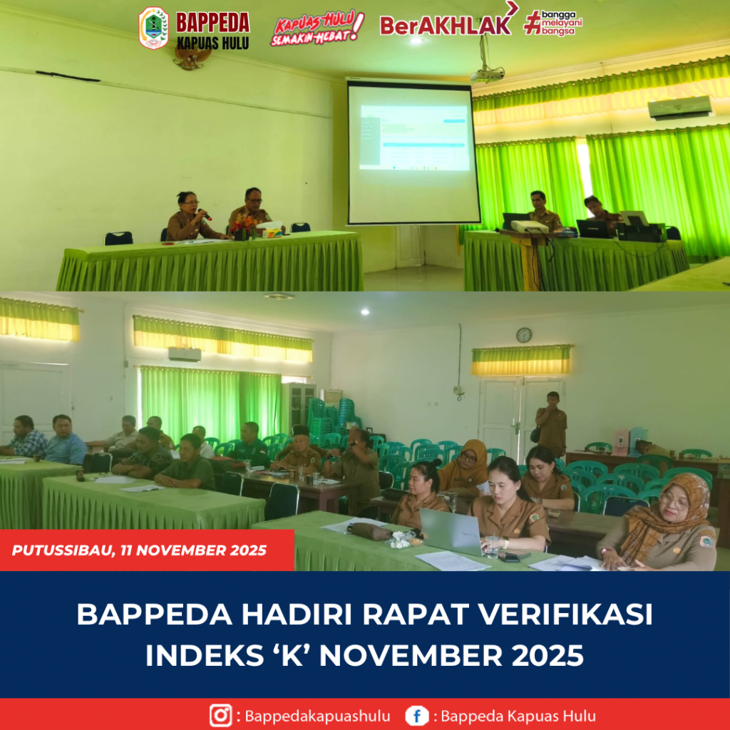 Badan Perencanaan Pembangunan Daerah (Bappeda) diwakili Margaretha Herawati,S.Sos., M.AP. (Perencana Ahli Muda) dan Silviana Kristi, S.M. (Perencana Ahli Pertama) Bidang Perencanaan Perekonomian menghadiri undangan rapat verifikasi usulan indeks ‘K’ untuk periode bulan November 2025, yang bertempat di Aula Dinas Pertanian dan Pangan Kabupaten Kapuas Hulu, Selasa (11/11/2025).