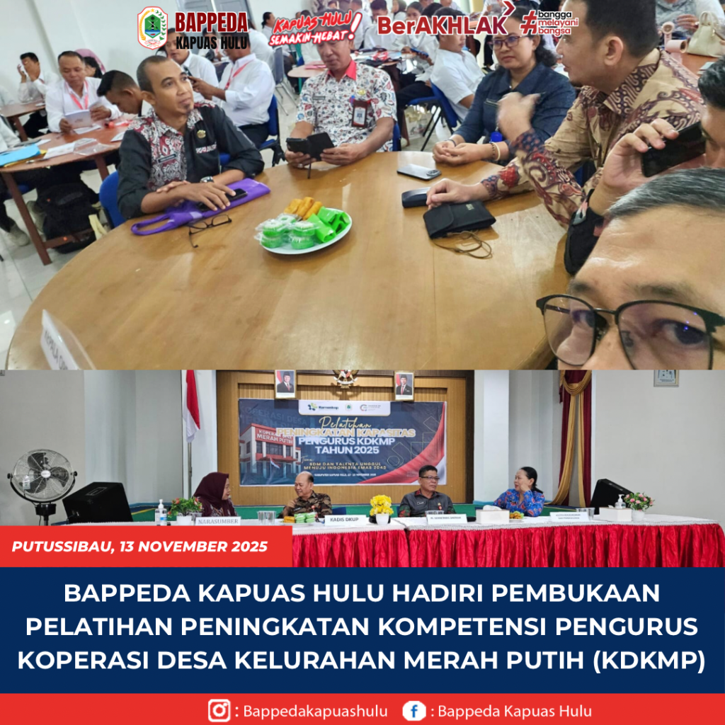 Badan Perencanaan Pembangunan Daerah (BAPPEDA) Kabupaten Kapuas Hulu yang di wakili oleh Sekretaris Bappeda Dedy,S.T.,M.T menghadiri acara pembukaan Pelatihan Peningkatan Kompetensi Sumber Daya Manusia Pengurus Koperasi Desa Kelurahan Merah Putih (KDKMP) se-Kabupaten Kapuas Hulu Angkatan I Tahun Anggaran 2025, yang bertempat di Aula Bank Kalbar Cabang Putussibau, Kamis (13/11/2025).