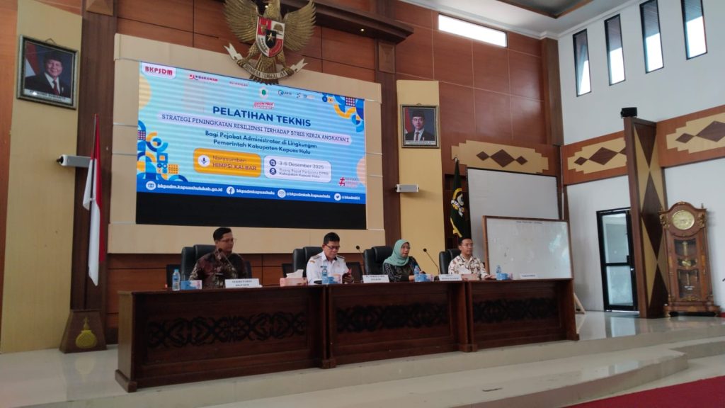 Sekretaris Satuan Polisi Pamong Praja (Satpol PP) Kabupaten Kapuas Hulu, Walidad, S.E, M.Si menghadiri Pelatihan Teknis Strategi Peningkatan Resiliensi terhadap Stres Kerja bagi Pejabat Administrator yang digelar di Gedung DPRD Kabupaten Kapuas Hulu pada Rabu (3/12/2025).Pelatihan tersebut dibuka secara resmi oleh Pj Sekretaris Daerah Kabupaten Kapuas Hulu, Agustinus Stormadi, S.E., M.Si, yang menekankan pentingnya peningkatan …
