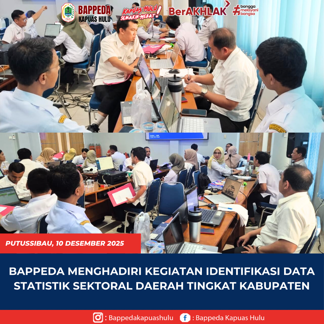Badan Perencanaan Pembangunan Daerah ( BAPPEDA ) Kabupaten Kapuas Hulu yang diwakili oleh Kasubbag Program Andreas Anjas, S.Ak beserta staf menghadiri kegiatan Identifikasi Data Statistik Sektoral Daerah Tingkat Kabupaten Kapuas Hulu dalam rangka memastikan ketersediaan Data Statistik Sektoral Daerah Tahun 2026 yang akan diinput kedalam e-Walidata SIPD dan Portal DataKH Tahun 2026 yang dilaksanakan di …