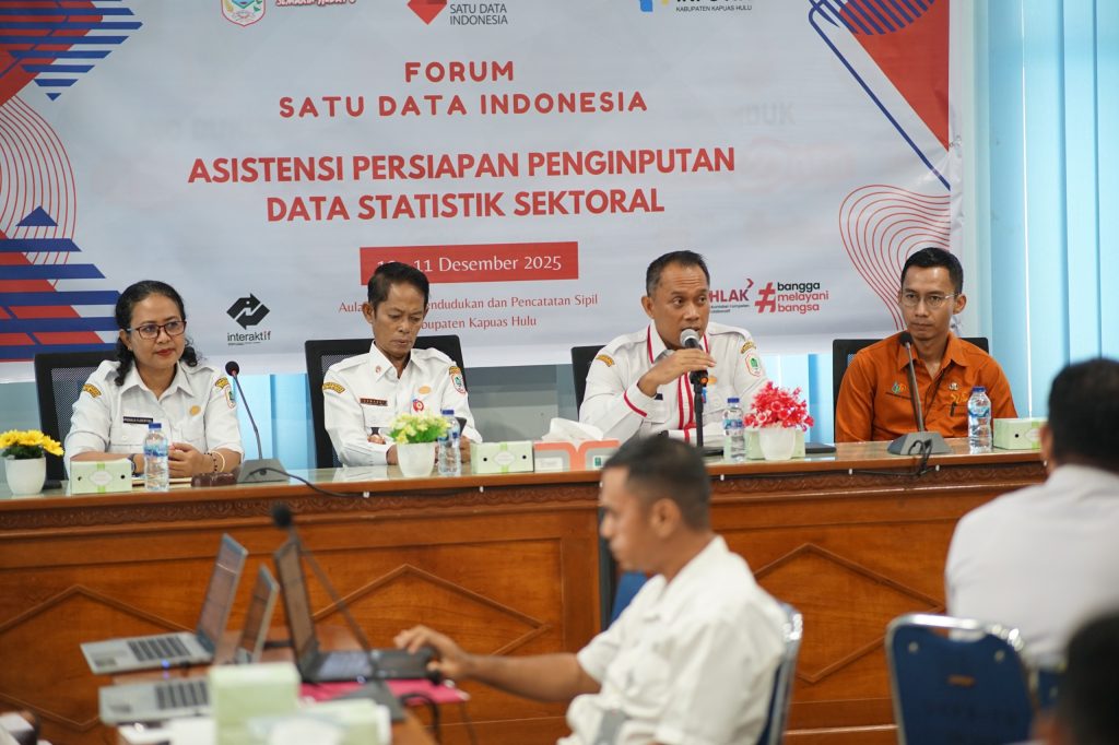 Dalam rangka penguatan implementasi Forum Satu Data Indonesia (SDI) di tingkat daerah, Dinas Komunikasi, Informatika dan Statistik Kabupaten Kapuas Hulu menyelenggarakan kegiatan intensif bertajuk “Asistensi Persiapan Penginputan Data Statistik Sektoral.” Kegiatan yang berlangsung selama dua hari di Aula Dinas Kependudukan dan Pencatatan Sipil ini bertujuan untuk meningkatkan kualitas, akurasi, dan konsistensi data statistik sektoral yang dihasilkan oleh Perangkat Daerah, Rabu (10/12/2025).