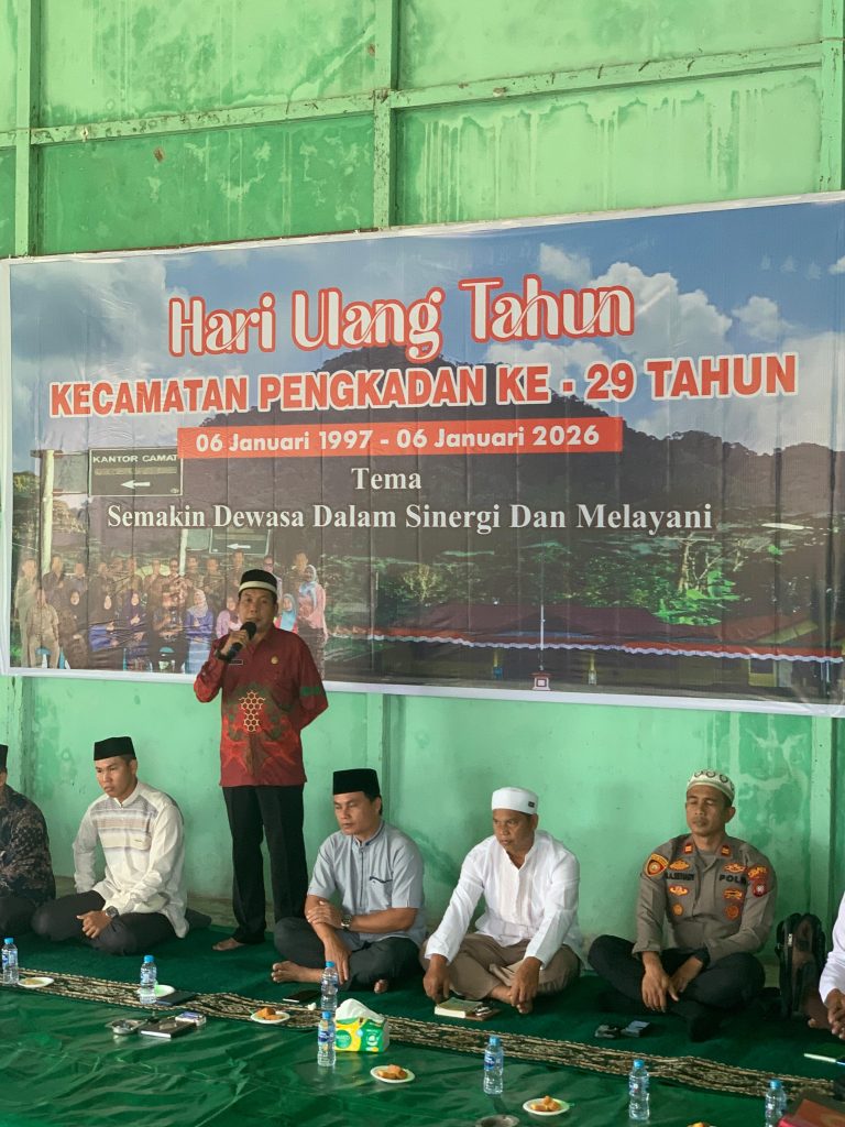 Dalam rangka memperingati Hari Ulang Tahun (HUT) Kecamatan Pengkadan ke-29 Tahun 2026, Pemerintah Kecamatan Pengkadan melaksanakan kegiatan peringatan yang berlangsung pada hari Selasa (6/1/2026), sekira pukul 08.00 WIB, bertempat di Gedung Serbaguna Kecamatan Pengkadan. Kegiatan tersebut mengusung tema “Semakin Dewasa Dalam Sinergi dan Melayani”.