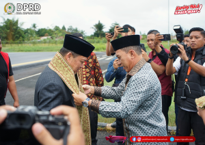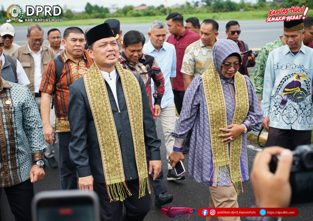 Ketua DPRD Kabupaten Kapuas Hulu, Yanto, S.P., menghadiri kegiatan penyambutan kedatangan Gubernur Kalimantan Barat, Drs. H. Ria Norsan, M.M., M.H., beserta Ny. Dr. Hj. Erlina Ria Norsan, S.H., M.H., dan rombongan dalam rangka Kunjungan Kerja ke Putussibau, Kabupaten Kapuas Hulu, Sabtu (21/2/2026).
