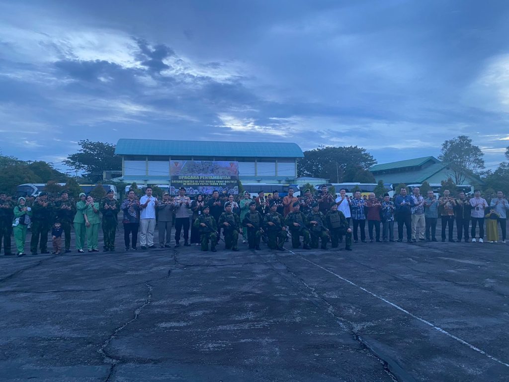 Putussibau – Kepala Satuan Polisi Pamong Praja (Satpol PP) Kabupaten Kapuas Hulu, Bahtiar, S.P.,M.Si menghadiri Upacara Purna Tugas Satgas Pamtas RI – PNG Mobile Yonif 644/Wls. dilaksanakan di lapangan Satria Yonif 644/Wls, Desa Sibau Hilir, Kec. Putussibau Utara.  Acara ini dihadiri oleh Wakil Bupati Kapuas Hulu, Sukardi, S.M, serta sejumlah pejabat daerah lainnya. Pada hari Jumat, (10/4/2026)