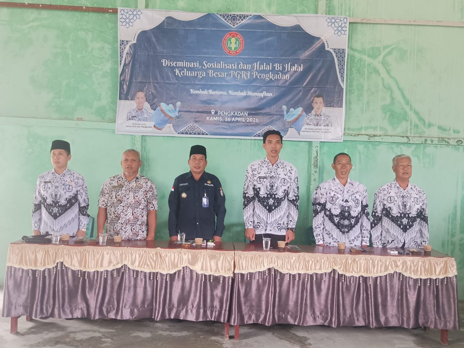 Persatuan Guru Republik Indonesia (PGRI) Kecamatan Pengkadan, Kabupaten Kapuas Hulu, menggelar kegiatan diseminasi, sosialisasi, dan halal bihalal yang berlangsung penuh kehangatan dan kebersamaan, Kamis (16/4/2026), di Gedung Serbaguna Kecamatan Pengkadan. Kegiatan ini dihadiri oleh Camat Pengkadan Sekoni, S.Sos., Sekretaris Kecamatan Achmad Syahrizal, S.E., Kasi Trantibum Ta’azim, S.E., Plt. Koordinator Pendidikan Kecamatan Pengkadan Christopher Arisha Liwan, …
