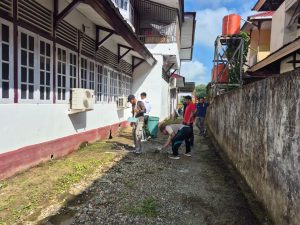 Kegiatan Jumat Bersih diikuti oleh seluruh pegawai dari berbagai bidang sebagai bentuk kepedulian terhadap kebersihan dan kenyamanan lingkungan kerja. Sejak pagi hari, para pegawai secara gotong royong membersihkan halaman kantor, menyapu area sekitar, merapikan taman, memangkas rumput, serta mengumpulkan sampah untuk dibuang pada tempat yang telah disediakan.