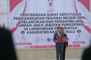 Dalam sambutannya, Bupati Kapuas Hulu, Fransiskus Diaan, S.H.,M.H. menyampaikan Ucapan Selamat kepada Saudara dan saudari sekalian yang pada hari ini telah resmi diangkat menjadi PNS dan dilantikan dalam Jabatan Fungsional. Bupati mengatakan juga bahwa amanah ini merupakan kepercayaan Negara yang harus dijalankan dengan penuh Tanggung jawab, Integritas dan Profesionalisme. Bupati juga mengharapkan kepada Kepala Perangkat Daerah, agar terus memberikan dukungan dan pembinaan kepada seluruh ASN, baik dalam jabatan pelaksana maupun Fungsional. Berikan ruang untuk berinovasi, Bangun Budaya Kerja yang Kolaboratif, serta lakukan evaluasi kinerja secara berkelanjutan dan objektif.