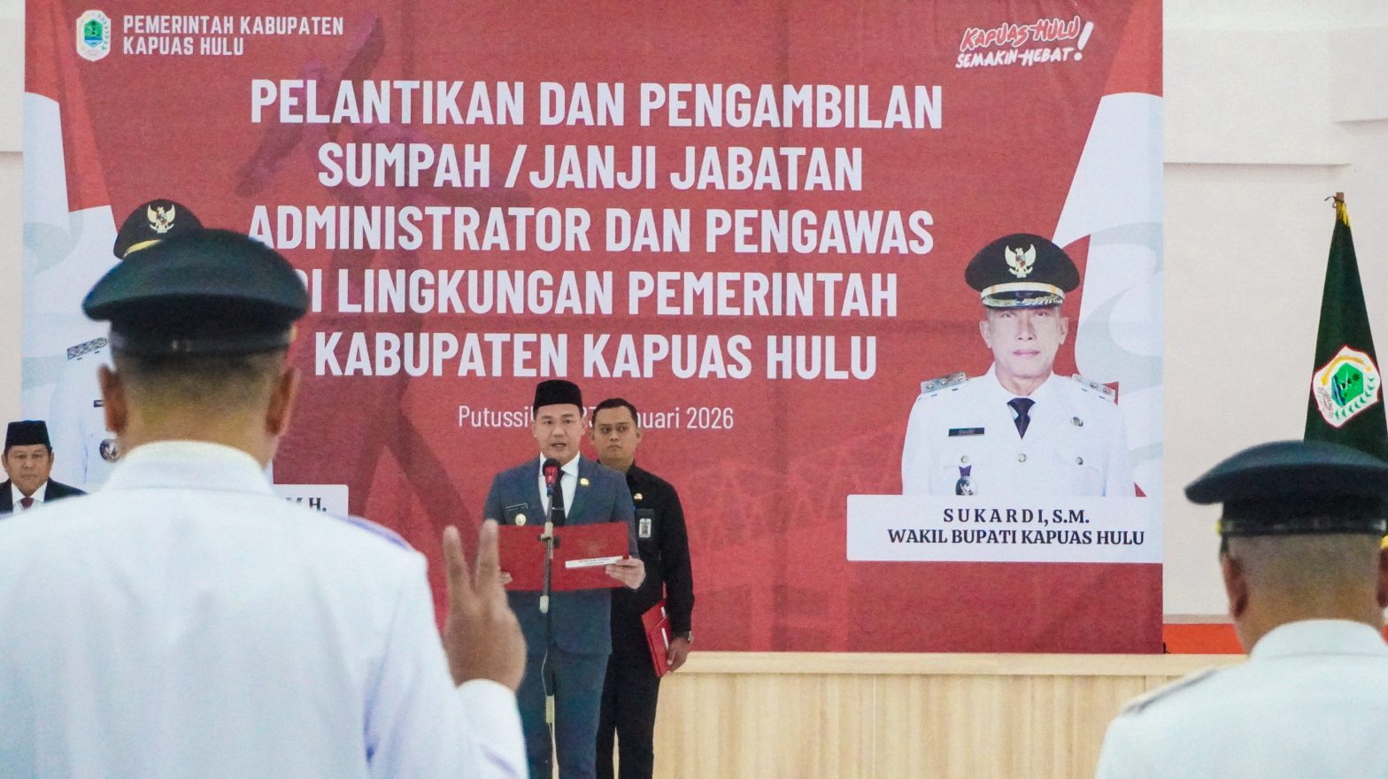 Kepala Dinas (KADIS) Perikanan Kabupaten Kapuas Hulu, Bambang, S.E., M.Si., menghadiri kegiatan Pelantikan dan Pengambilan Sumpah/Janji Jabatan Administrator dan Pengawas di Lingkungan Pemerintah Kabupaten Kapuas Hulu yang dilaksanakan di Aula Kantor Satu Atap (SATAP) Kabupaten Kapuas Hulu, Jum’at (23/1/2026). Kegiatan tersebut turut dihadiri oleh Bupati Kapuas Hulu, Kapolres Kapuas Hulu, Dandim 1206 Putussibau, Kajari Kapuas …