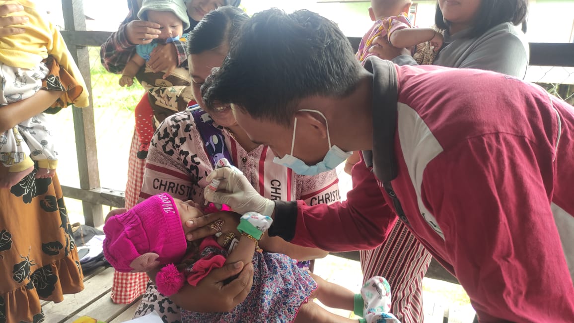 Tenaga kesehatan Puskesmas Suhaid kembali melaksanakan Imunisasi pada bayi dan balita di Gedung Posyandu Desa Tanjung Harapan, Kecamatan Suhaid Kabupaten Kapuas Hulu, Selasa (9/8/2022). Imunisasi dalam upaya mencegah penularan Penyakit tertentu yang dapat dicegah melalui imunisasi di Posyandu tersebut penting dilaksanakan agar anak mendapatkan daya tahan tubuh yang baik. Kegiatan tersebut dengan Tema “Penuhi Hak …