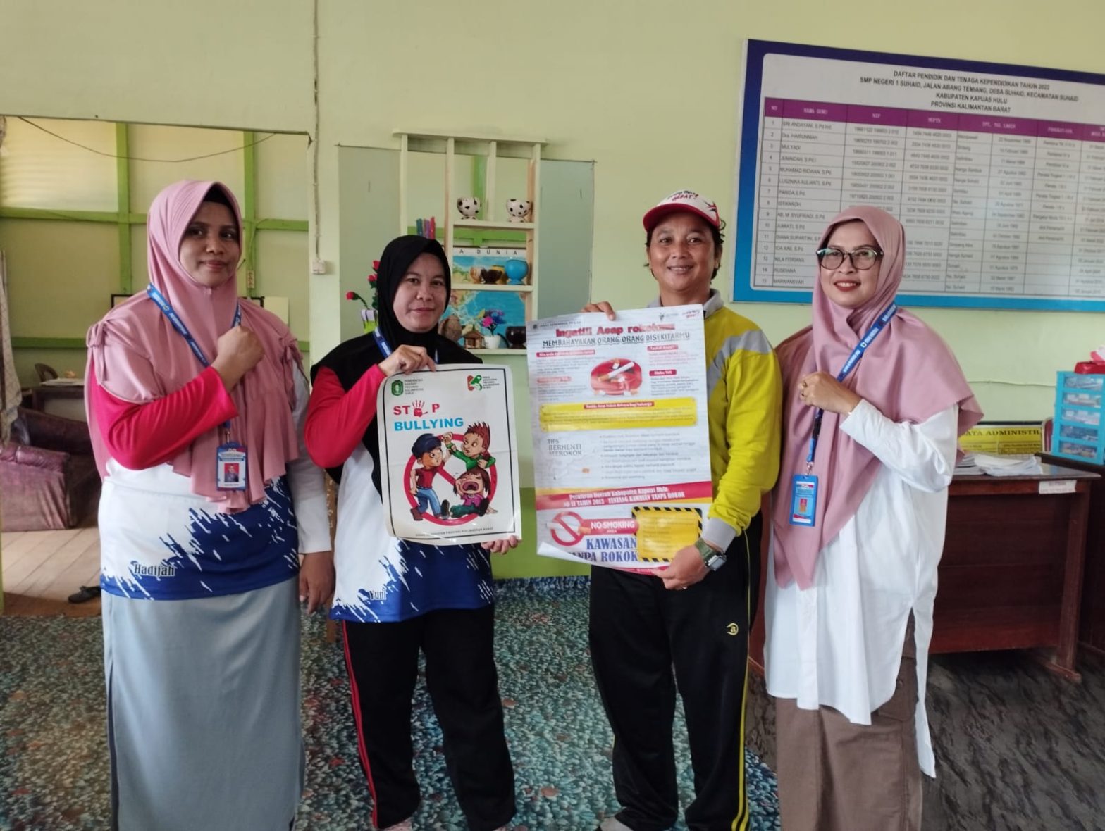 Dalam kesempatan tersebut, Tenaga kesehatan Puskesmas Suhaid Indah Yuni menyampaikan bahwa kegiatan penyebarluasan media informasi kesehatan itu bertujuan untuk memberikan informasi – informasi atau edukasi seputaran kesehatan kepada siswa – siswi di sekolah.