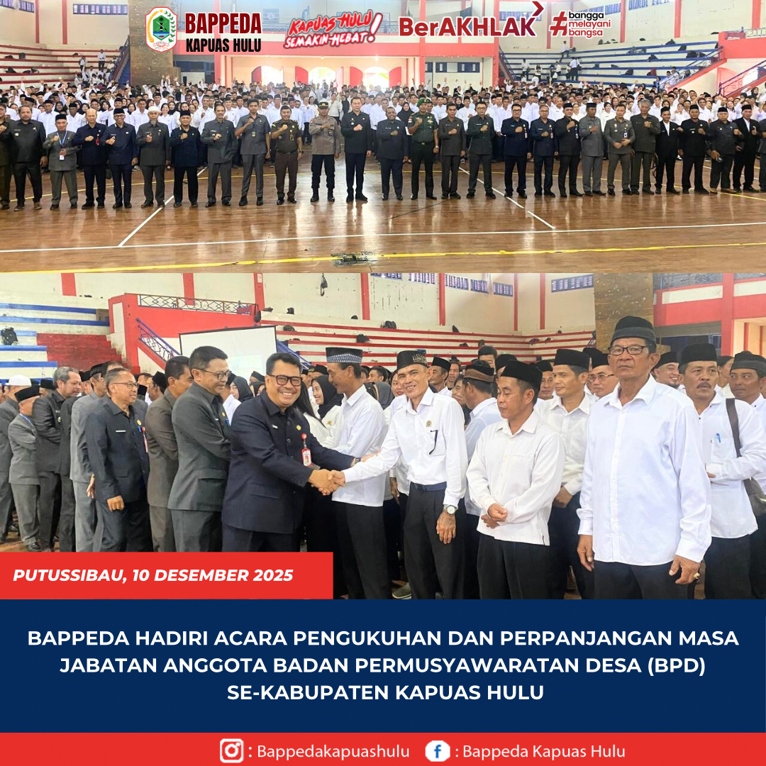 Kepala Badan Perencanaan Pembangunan Daerah (BAPPEDA) Kabupaten Kapuas Hulu Ambrosius Sadau,S.H.,M.Si Menghadiri Acara Pengukuhan Dan Perpanjangan Masa Jabatan Anggota Badan Permusyawaratan Desa (BPD) Se-Kabupaten Kapuas Hulu Di Gedung Volley Indoor Putussibau, Rabu (10/12/2025). Kegiatan Ini Di Hadiri Oleh Bupati Kapuas Hulu, Fransiskus Diaan, Dan Di Hadiri Oleh Forum Koordinasi Pimpinan Daerah Kabupaten Kapuas Hulu, Para …