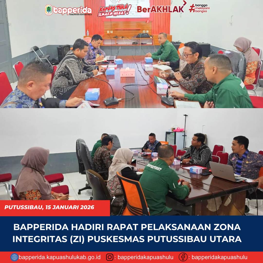 Badan Perencanaan Pembangunan, Riset dan Inovasi Daerah ( BAPPERIDA ) Kabupaten Kapuas Hulu yang di wakili oleh Muhammad Hotsada Borneo Panjaitan, S.STP. Penelaah Teknis Kebijakan, Menghadiri Kegiatan Rapat Pelaksanaan Zona Integritas (ZI) Puskesmas Putussibau Utara Tahun 2026, yang bertempat di Ruang Rapat Gedung Dharma Wanita Dinas Kesehatan Kabupaten Kapuas Hulu, Kamis (15/01/2026) Pukul 09.00 WIB …