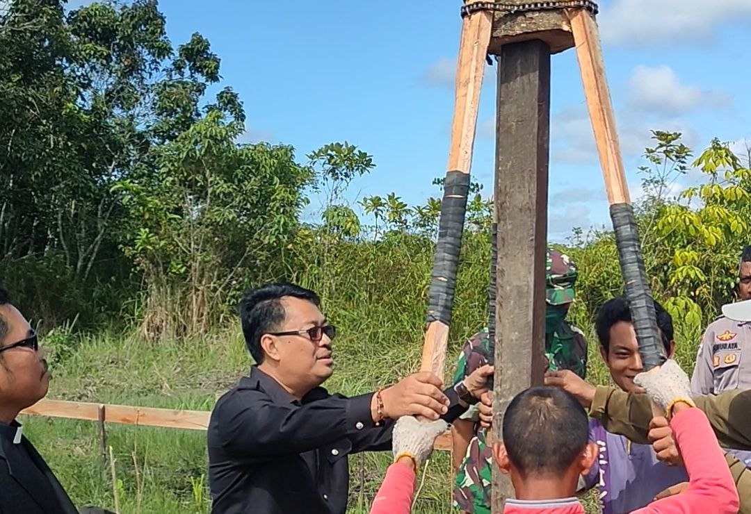 Penancapan tiang pertama Gereja HKBP Pos Pelayanan Ibadah Pniel Exaudi Putussibau dilakukan di Desa Sibau Hilir, Putussibau Utara, Jumat (19/8/2022). Penancapan diresmikan oleh, Ambrosius Sadau, mewakili Bupati Kapuas Hulu, Fransiskus Diaan. Panitia Pembangunan Gereja HKBP, Amang Sintua W Panjaitan, mengatakan rencana pembangunan gereja HKBP ini berawal dari kerinduan masyarakat Batak yang ada di Putussibau untuk …