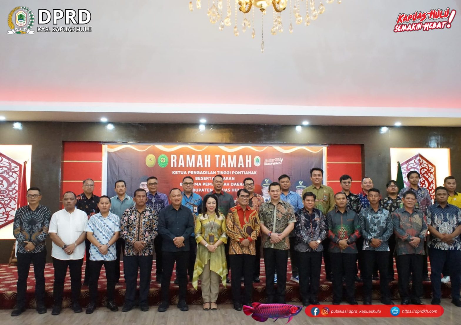 Ketua DPRD Kabupaten Kapuas Hulu Yanto, S.P menghadiri kegiatan Ramah Tamah Ketua Pengadilan Tinggi Pontianak F. Willem Saija, S.H., M.H beserta jajarannya, yang berlangsung di Pendopo Rumah Dinas Bupati Kapuas Hulu, pada Kamis (16/10/2025). Kegiatan ramah tamah tersebut turut dihadiri oleh Bupati Kapuas Hulu Fransiskus Diaan, S.H., M.H, jajaran Forum Koordinasi Pimpinan Daerah (Forkopimda) Kabupaten …
